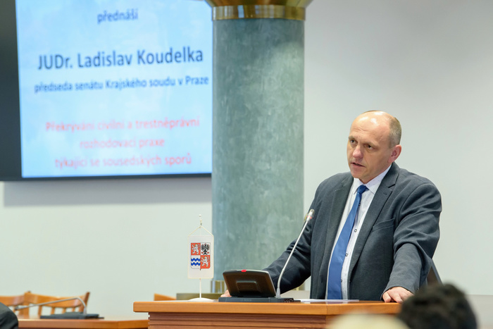 Po přestávce odlehčil atmosféru s humorem vtipně pojatým referátem o překrývání civilní a trestně právní rozhodovací praxe týkající se sousedských sporů JUDr. Ladislav Koudelka, PhD., předseda senátu Krajského soudu v Praze. Nicméně i jeho, byť trefně vypointované, soudničky z trestní sféry, jen potvrdily složitost a zapeklitost sousedských vztahů. Závěrečný referát patřil Mgr. Aleně Zemkové, soudkyni Krajského soudu v Praze, která přednesla několik poznámek k sousedským vztahům z pohledu odvolacího soudu.
