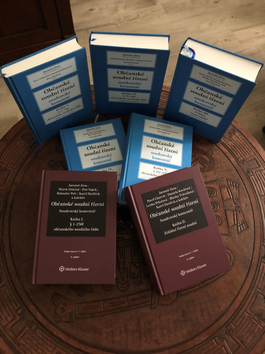 Rozsáhlou publikaci vydává Wolters Kluwer, pro který zpracováváme toto dílo na klíč. Komentář zahrnuje civilní soudní proces podle občasného soudního řádu a zákona o zvláštních řízeních soudních ve stavu k 1. 1. 2023. Na rozdíl od původního vydání (HBT, 2014) a následných dvou vydání ve Wolters Kluwer (2017, 2019 je tentokrát materie soustředěna do tří knih, z nichž první právě vyšla a obsahuje obecnou část civilního procesu a nalézací, odvolací a dovolací řízení podle občanského soudního řádu; druhá kniha obsahuje komplexní komentář procesu podle zákona o zvláštních řízení soudních; třetí svazek, který jsme právě vypravili na cestu k vydavateli bude dokončen během několika týdnů a soustřeďuje pozornost na vykonávací řízení.