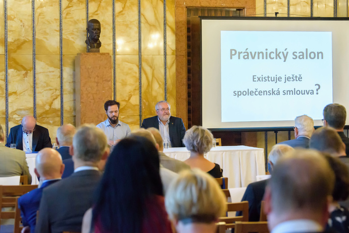 Stálá konference českého práva navázala na covidovou pandemií přerušenou tradici Právnického salonu a uspořádala jeho další debatu, tentokrát na téma „Existuje ještě společenská smlouva?“ Záštitu nad akcí převzali prezident Soudcovské unie JUDr. Libor Vávra a místopředseda Nejvyššího soudu JUDr. Petr Šuk.