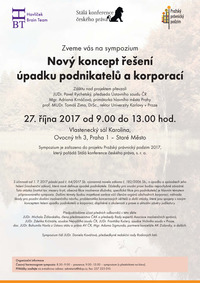 V pátek 27. října 2017 se v noblesních prostorách starobylého Karolina uskutečnilo sympozium nazvané Nový koncept úpadku podnikatelů a korporací. Tato akce, jíž moderovala JUDr. Daniela Kovářová, proběhla ve spolupráci s advokátní kanceláří JUDr. Michala Žižlavského a v partnerství s Asociací insolvenčních správců a s Karlovou univerzitou v Praze.