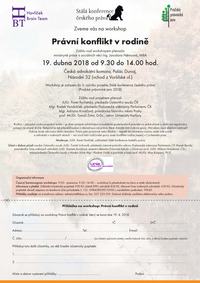 Ve čtvrtek 19. dubna 2018 se v Paláci Dunaj konal workshop nazvaný Právní konflikt v rodině, který uspořádala Stálá konference českého práva ve spolupráci se sekcí rodinného práva České advokátní komory a Unií rodinných advokátů. Akci zaštítila ministryně práce a sociálních věcí Ing. Jaroslava Němcová, MBA, a moderoval jej zakladatel Stálé konference českého práva JUDr. Karel Havlíček. Moderátor v úvodu řekl, že právní rodina je rodina rozpolcená. Rozhádaní rodiče se ohánějí nejlepším zájmem dítěte, ale jen tehdy, pokud se jim to hodí. Rodina pozitivní se naopak zmiňuje minimálně, ačkoliv v tomto tekutém světě jde o jednotku naprosto ziskovou. Normální je přece se nesoudit a podporovat zdvořilost a čest. Kdysi v rodinném právu platila zásada, že co není právem upraveno, je dovoleno. Dnes je trend ovšem odlišný: co není upraveno, to musíme honem upravit.