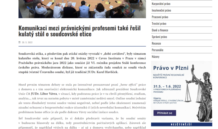 Úvod > O nás > My a média > Advokátní deník o Kulatém stolu na téma soudcovská etika