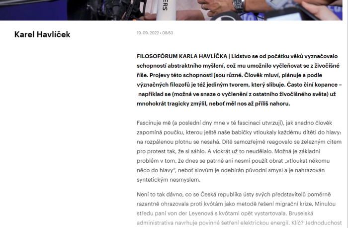Filosofórum Karla Havlíčka každý týden na Info.cz
