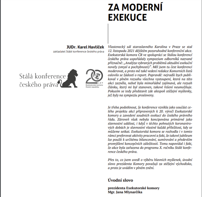 Úvod > O nás > My a média > Komorní listy: Za moderní exekuce