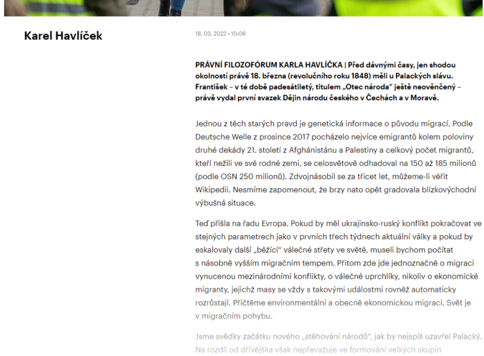 Úvod > O nás > My a média > Nad čím plakal Palacký? Stěhování národů už začalo
